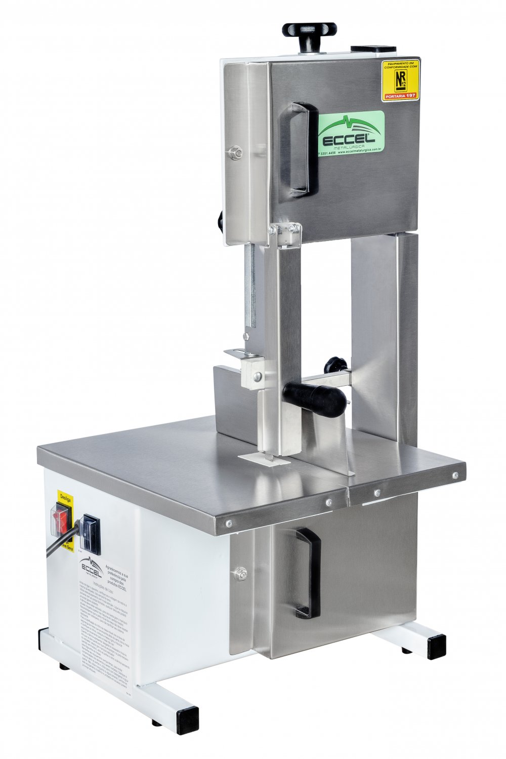 A mini serra fita 146 SEMI-INOX é um equipamento para uso profissional com estrutura em chapa de carbono com pintura eletrostática e portas inferior e superior em aço inox 430 Caracteristica do Produto Modelo: MSIE-146 - Volantes de ferro fundido pintados