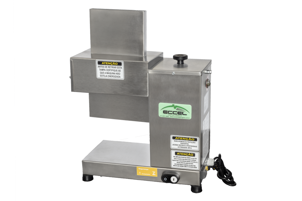 Esta máquina é responsável por amaciar o bife que é vendido no balcão do açougue. O equipamento funciona por meio de um rolo de navalhas que passa pela carne e consegue quebrar as suas fibras, transformando em peças finas.